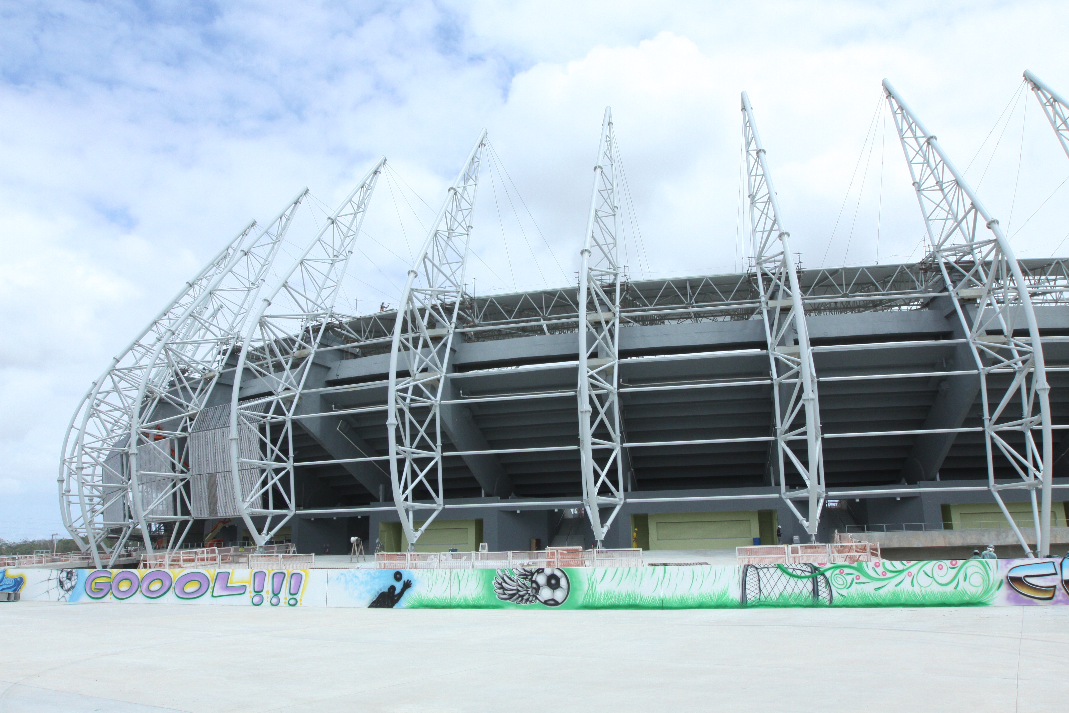 Palco de três jogos da Copa das Confederações 2013 e seis da Copa do Mundo da FIFA Brasil 2014 TM, a Arena Castelão deve ser entregue no dia 15 de dezembro, conforme o relatório divulgado pelo consórcio formado pelas empresas Galvão Engenharia e Andrade Mendonça.