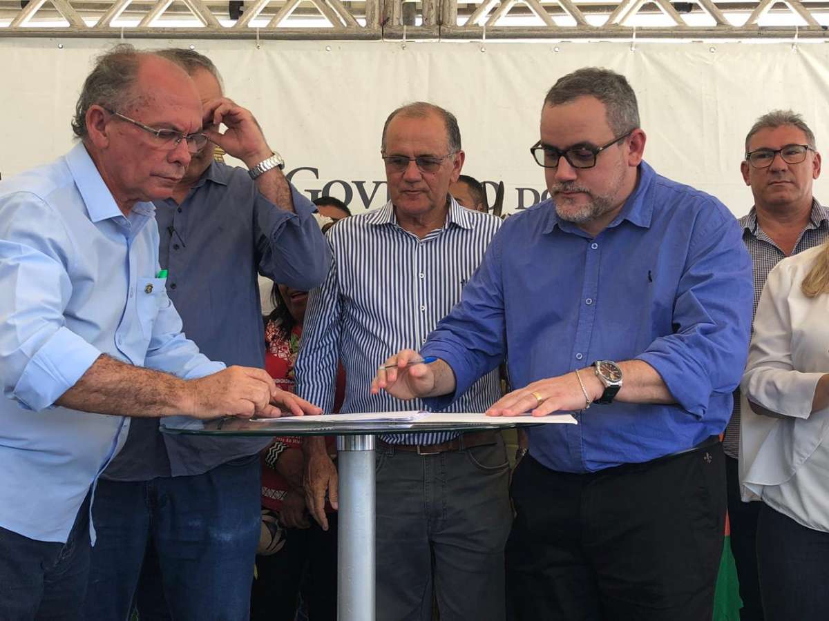 Nelson Martins, secretário de Relações Institucionais da Casa Civil, e Felipe Pinheiro, superintendente adjunto de Rodovias da SOP, assinam ordem de serviço da CE-168 em Itapipoca