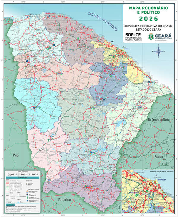 A Superintendência de Obras Públicas (SOP) liberou, nesta terça-feira (8), a edição 2026 do Mapa Rodoviário do Ceará. O documento é essencial para quem busca informações precisas sobre a infraestrutura de transporte nas diversas regiões do estado.